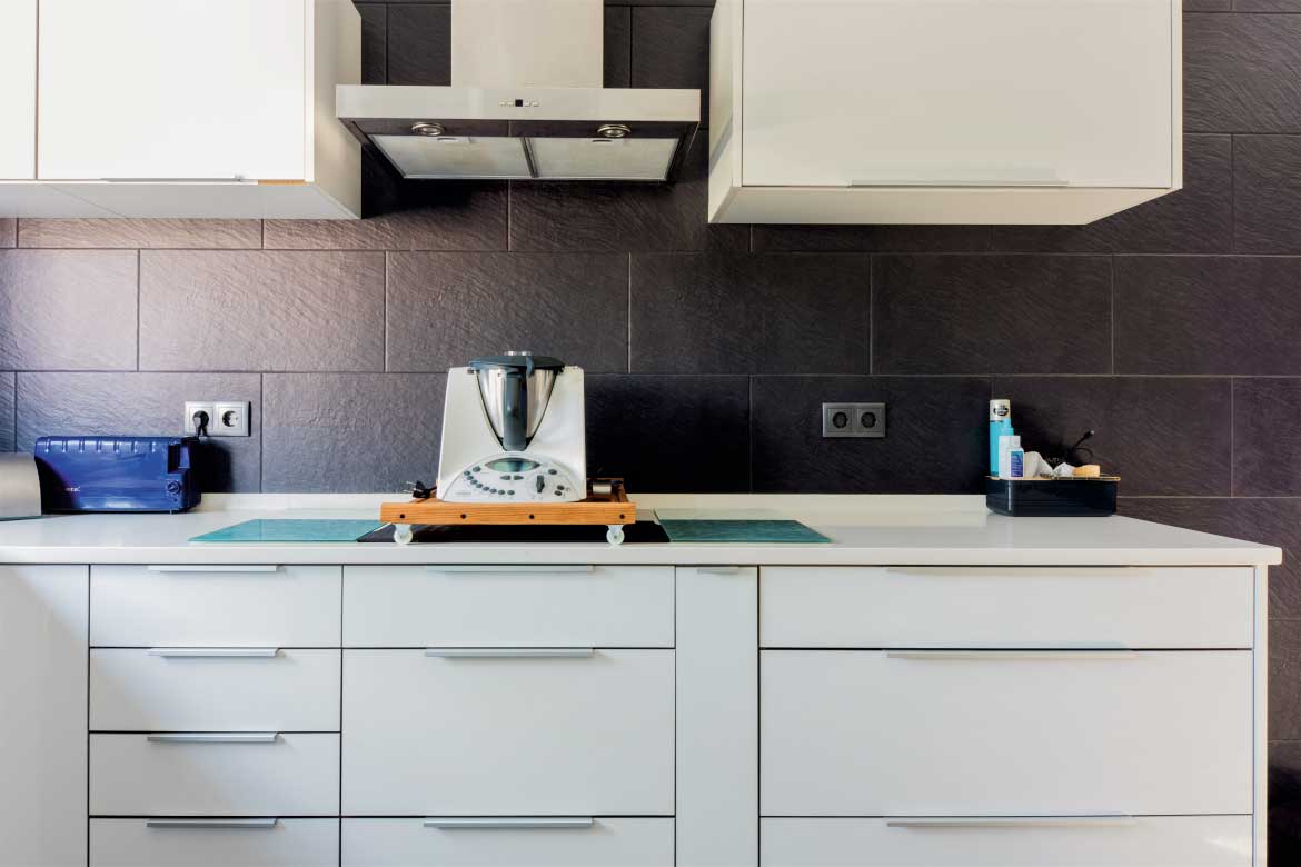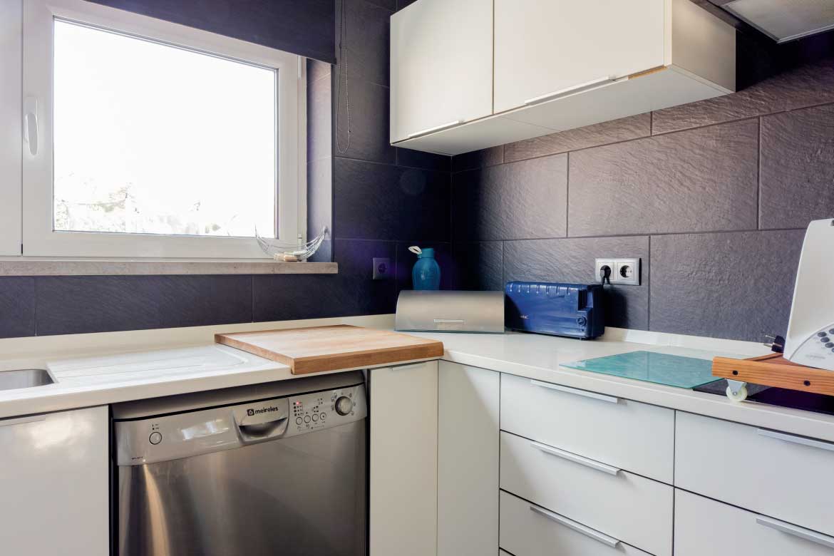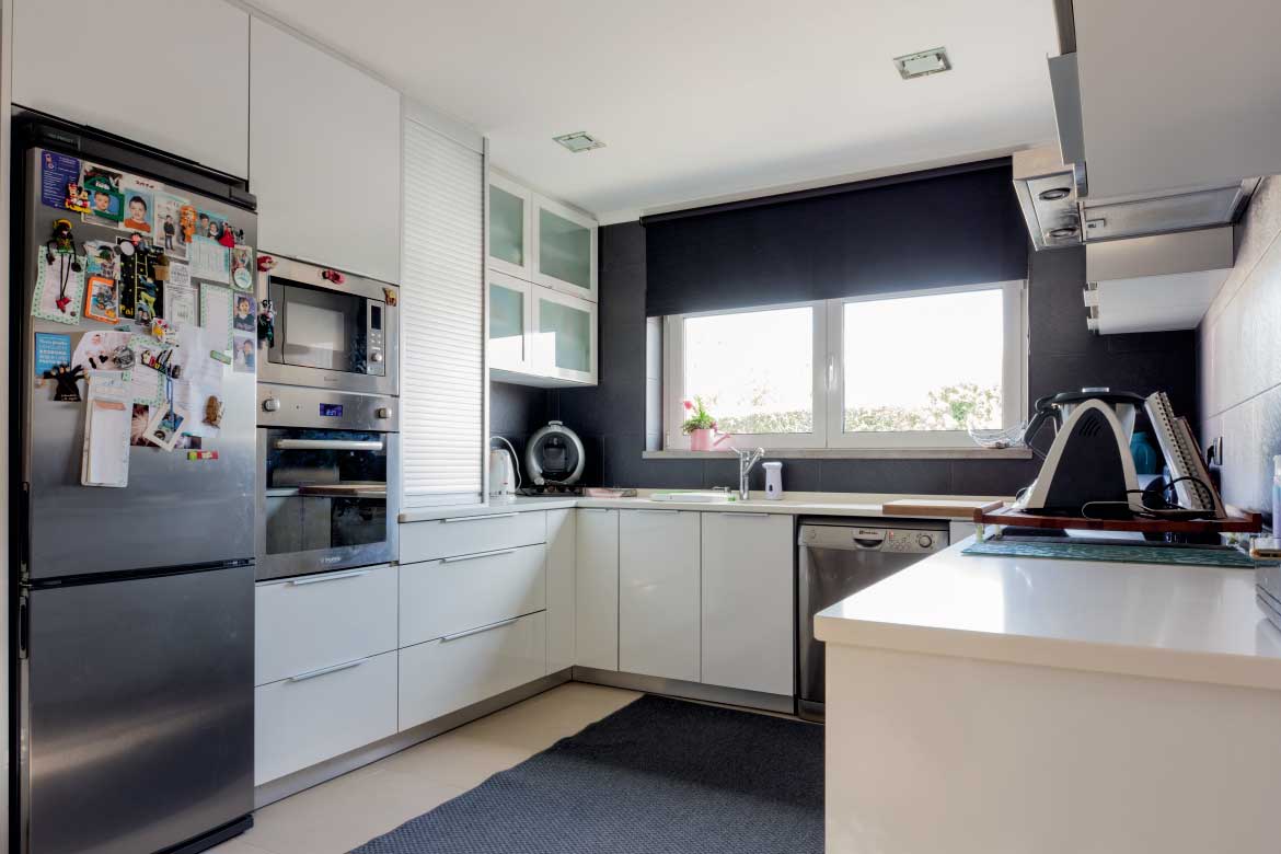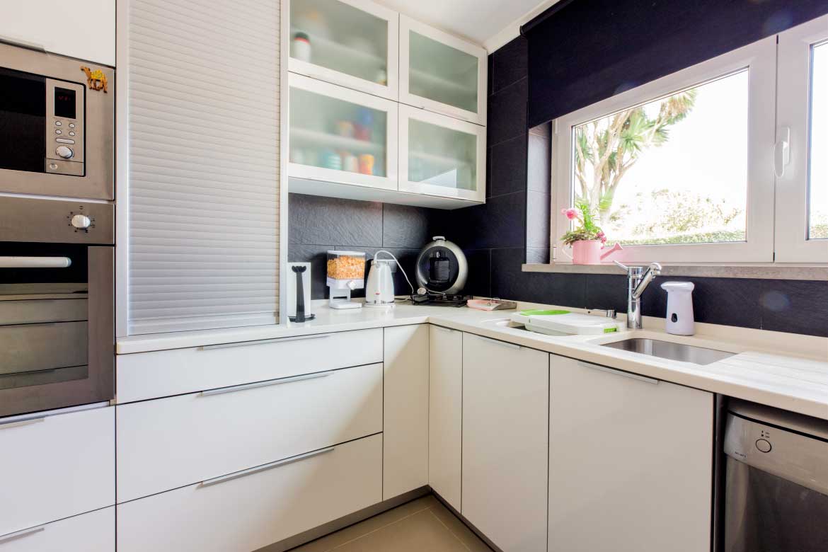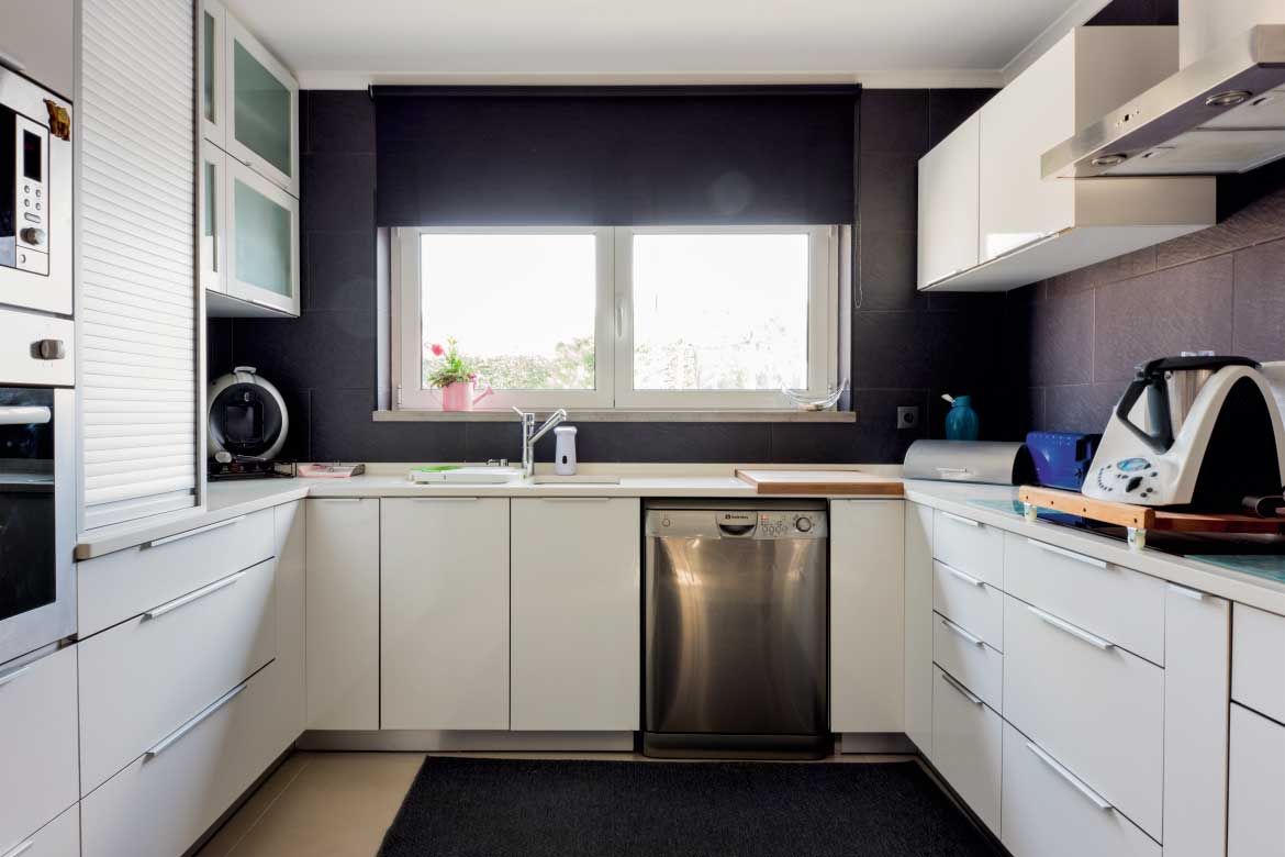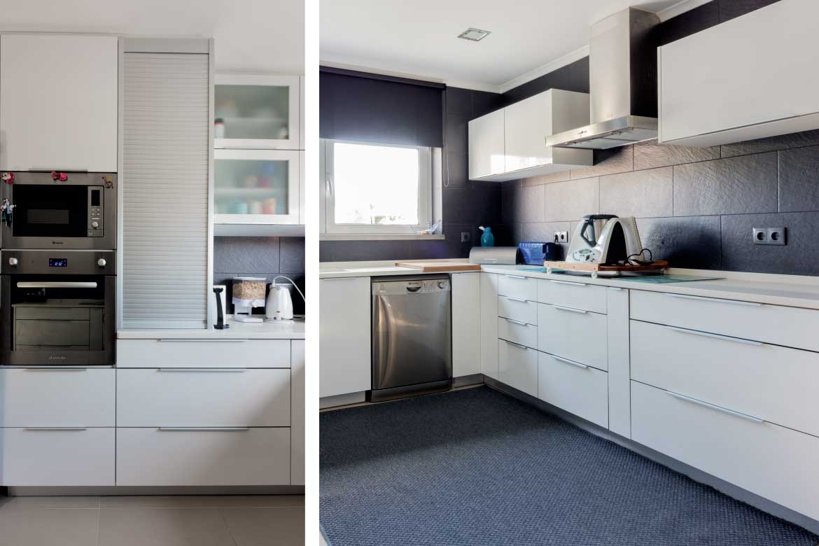 Executada em termolaminado branco B070 brilho. Porta persiana à cor do alumínio.
